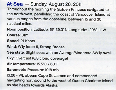 Day 1: Saturday, August 27, 2011: Out to Sea