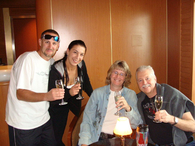 Enjoying a bit of champagne with our new friends Jesse and Anna. They are honeymooning too.