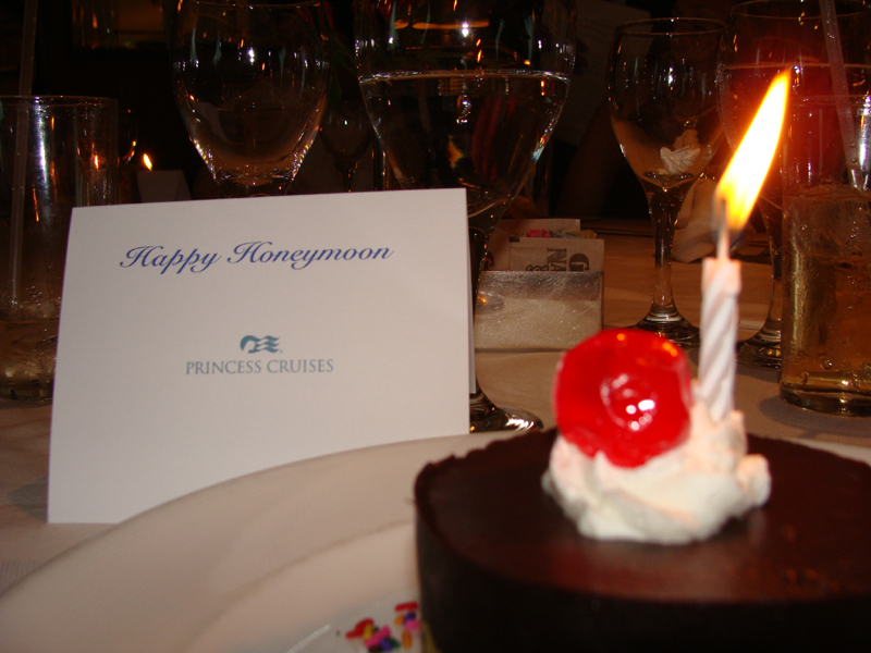 Our dining room waiter brought us a Happy Honeymoon cake and sang to us